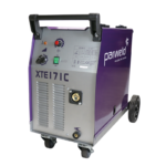 Compact Automotive 230V Single Phase MIG Transformer Power Source Machine from Parweld. The XTE 171C cabinet can accept a gas cylinder and its large wheels mean it is easily portable and can be moved from job to job, making the welding machine very versatile. The XTE 171C has a DC Output and when combined with the correct type of wire it is suitable for welding mild steel, stainless steel and aluminium. 8 voltage steps allow fine tuning. The feed box ensures reliable feeding of 0.6mm and 0.8mm wires.