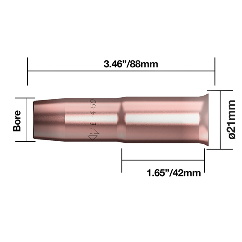 | Nozzle Size | 3.46" (88mm) Full Length, 1.65" (42mm) Connection Length, 21mm Diameter |