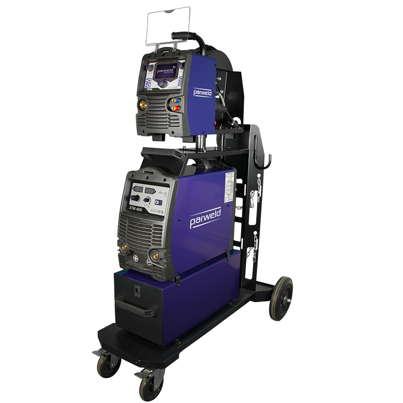 The XTM 405i three-phase MIG Inverter is a high-performance multi-process power source capable of MIG, Lift TIG, and MMA welding. Trolley mounted with a storage drawer and separate wire feeder with a large interactive colour screen. The machine has synergic control in MIG mode, so all welding parameters will adjust automatically when the material thickness is changed, making it easy to operate. Inverter technology delivers significant power savings over conventional step MIG machines. The XTM 405i can be upgraded to a water cooled set by swapping the drawer for a water cooler.