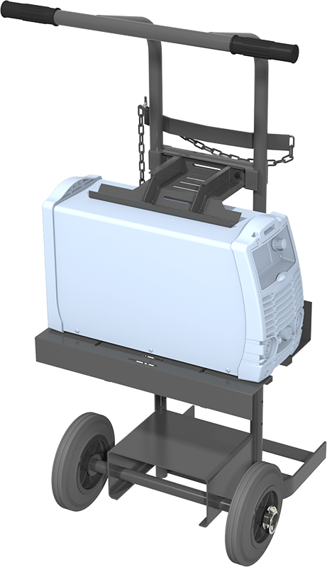 Beyond the standard unit, the trolley can accommodate other suitably sized inverter welders. Simply use the provided base clamps and strap for a universal, secure mounting solution. The strap can also provide an additional layer of strength and stability for existing Parweld inverters designed to fit the TR012 trolley.